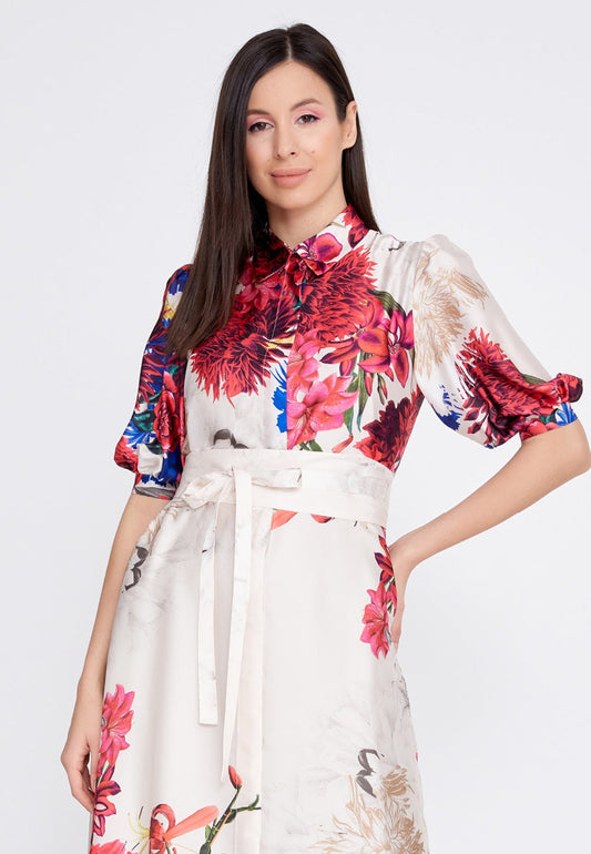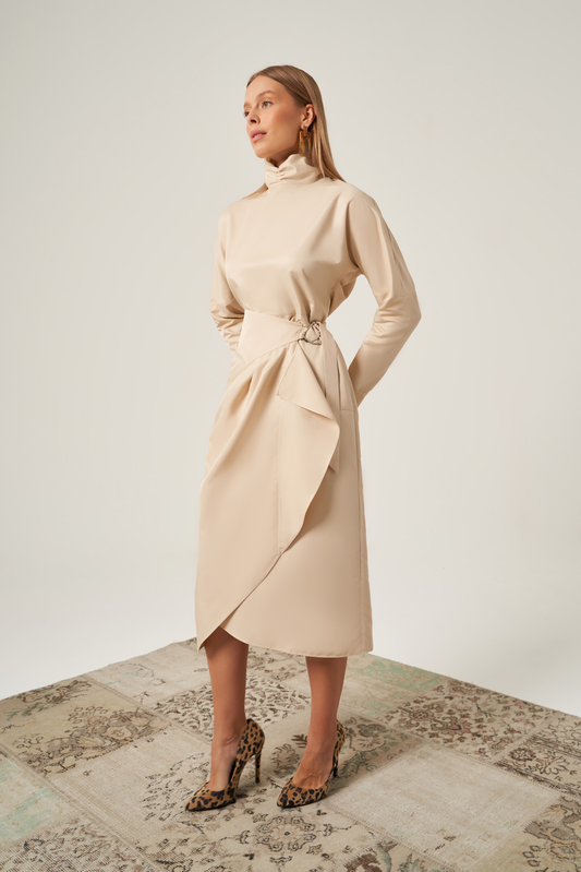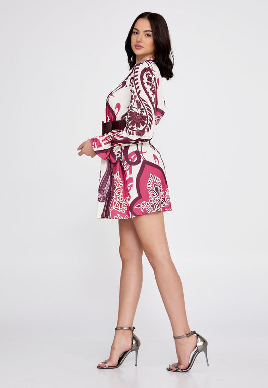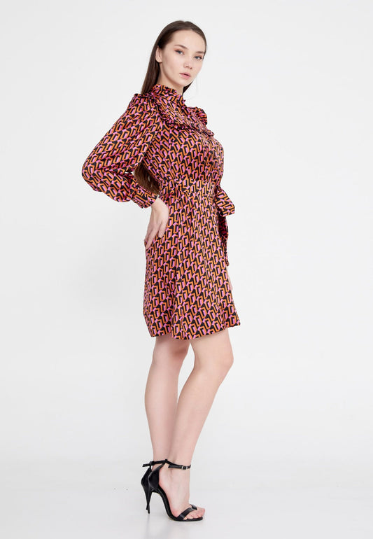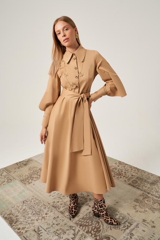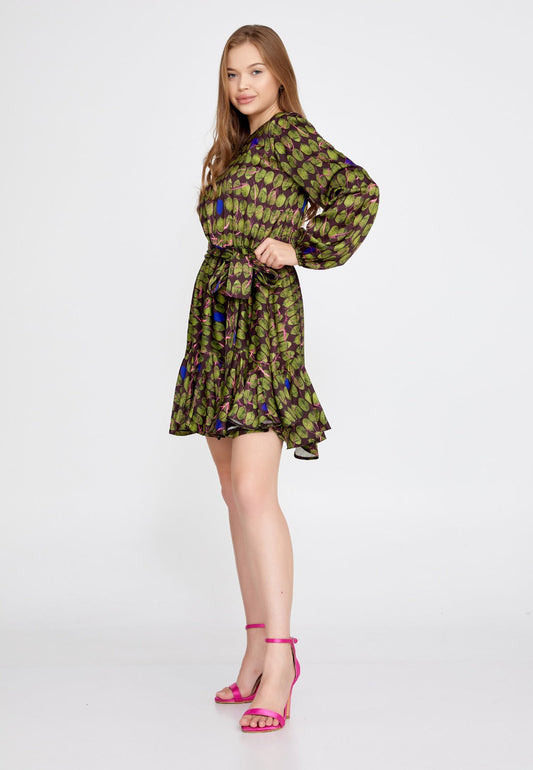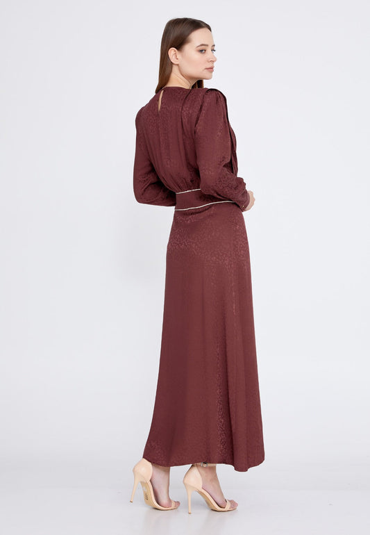 Mahogany Snakeskin Patterned Leather Belted Dress