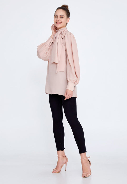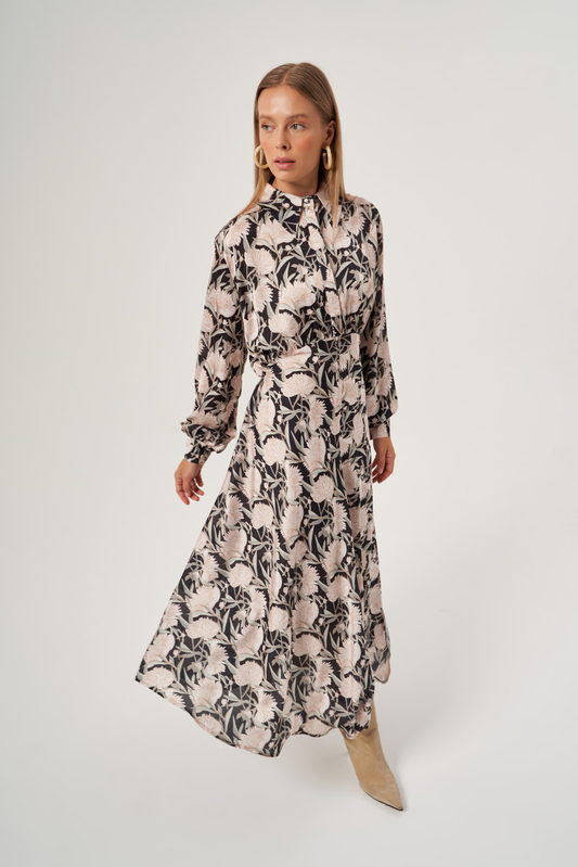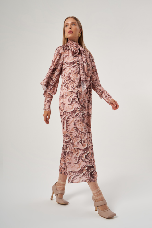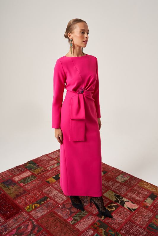 Pink Long Sleeve Midi Viscose Column Regular Casual Dress