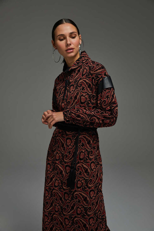 Mahogany Snakeskin Patterned Leather Belted Dress