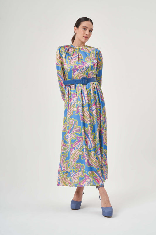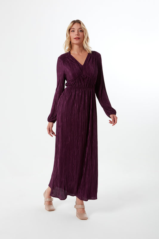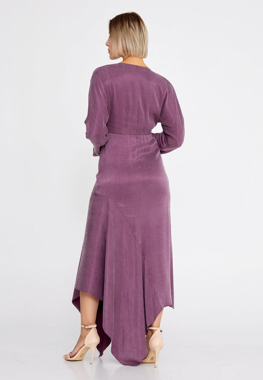 Pink Long Sleeve Midi Viscose Column Regular Casual Dress