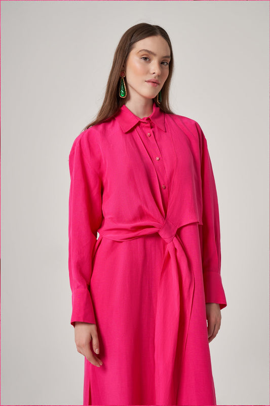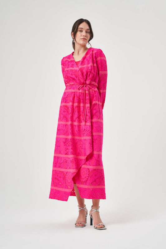 Fuchsia Cut Jacquard Dress with Double-Breasted Closure